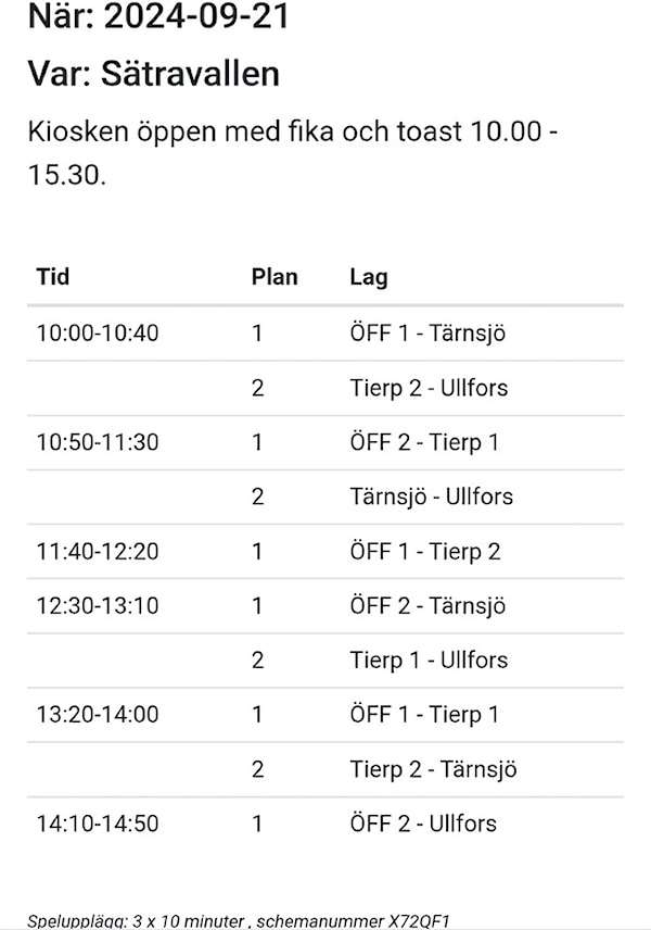 Vi samlas kl.09.00 på sätravallen, första matchen börjar kl.10.00.
