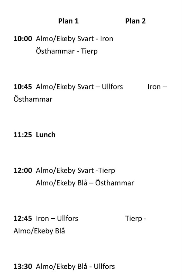 Första matchen börjar 10.45 av tre, varje match är 3×10 min ⚽