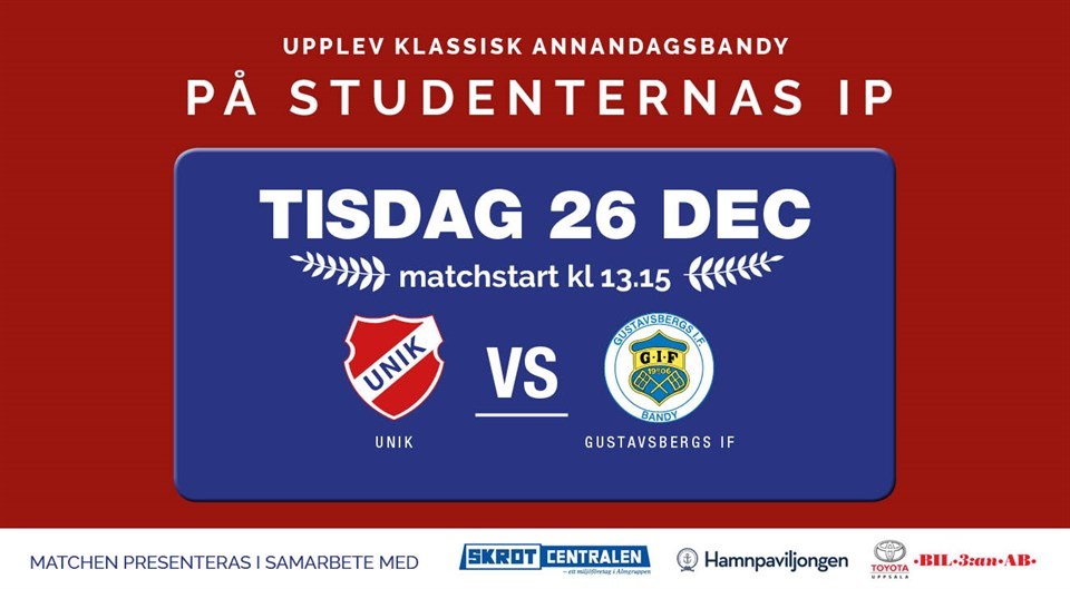 På klassisk bandytid 13.15 spelar UNIK annandagsbandy. Och dagen till ära har matchen flyttats till Studenternas. Så ta chansen att andas frisk luft mellan julmat och julgodis. Kioskerna ska vara igång så det finns kaffe & korv. P-05 21 dec 2017 0kommentarer