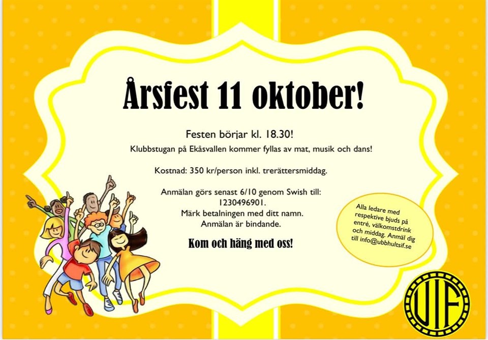 Följ oss för uppdateringarLördagen den 11 oktober är det dags för årets roligaste tillställning! Hoppas vi ses! 🎉
