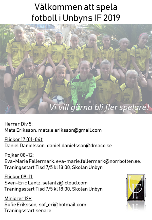 Jag bifogar information kring hur Unbyn tänker kring lagen i år samt vilka som är ledare för dessa.