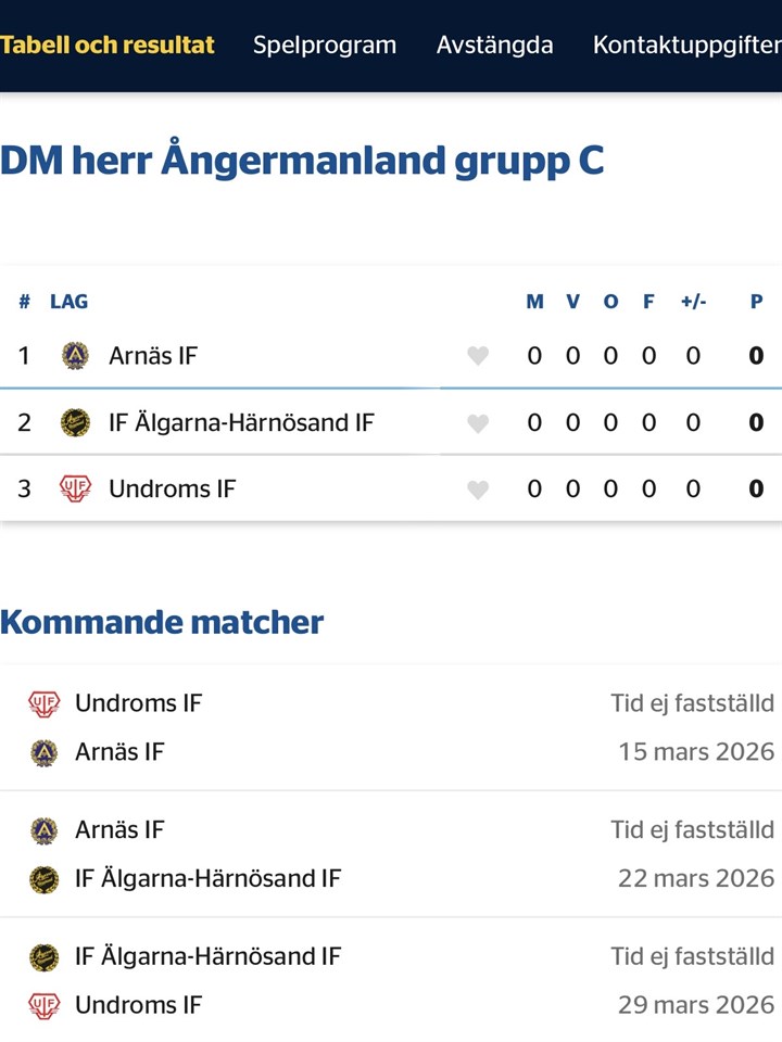 Fyll i din e-postadress för gratis uppdateringar om Undroms IF A-lag Herrar
