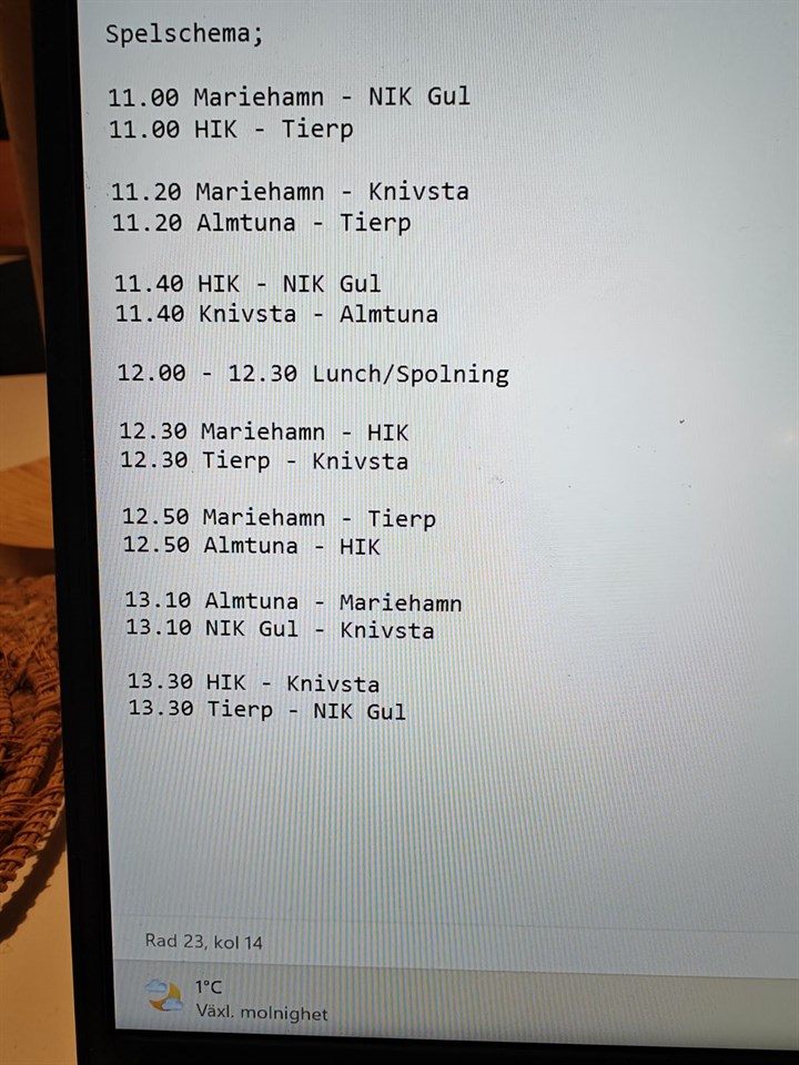 Glöm inte bort träningen imorgon. Kiosken är öppen från 14.00 , spela pingis, spel eller se tv I kiosken finns de toast och nudlar att köpa . Säljer ej godis eller läsk veckodagarna . Utvecklingslaget 15 sep 2024 0kommentarer