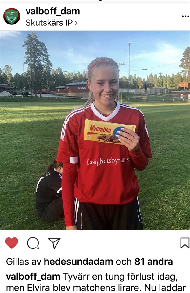 Så tar Elvira hem chokladkakan för matchens kämpe/lirare. Matchen spelades mot Skutskär och resultatet har vi redan glömt. Skutskär spelade riktigt bra och förtjänta av förstaplatsen i serien. Nästa match är äntligen på Åbyvallen, efter 3 raka bortamatcher så längtar vi hem, på nationaldagen så gästas vi av IK Sätra, matchstart 19.00. Damlag 30 maj 2017 0kommentarer