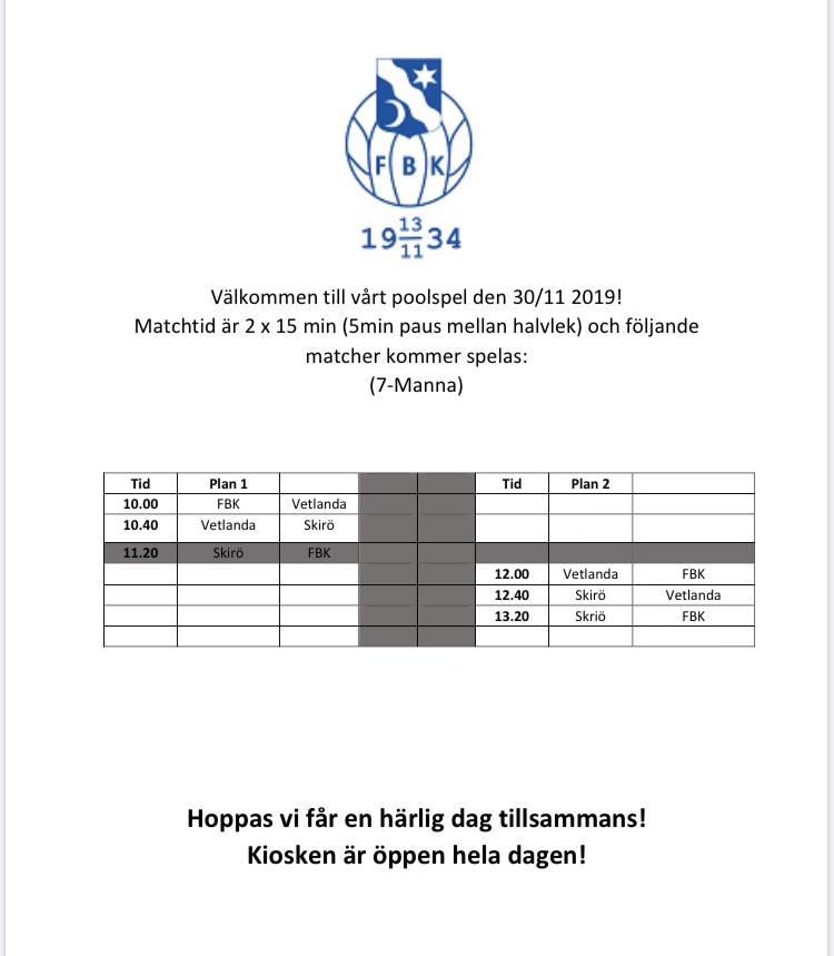Hej! Matchstart är förmodligen 15 minuter försenat! U11 23 nov 2019 0kommentarer