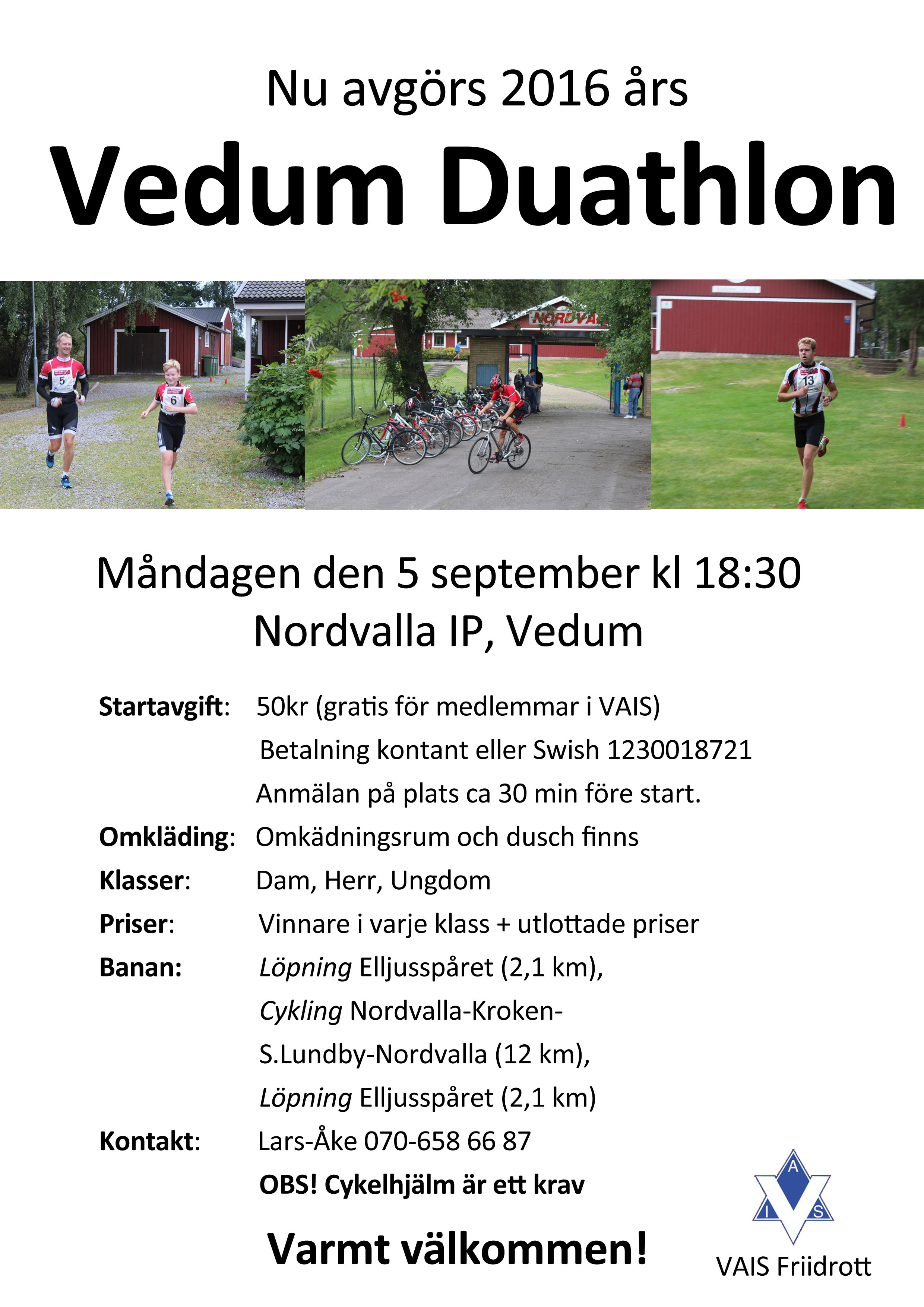 Startavgift: 50kr (gratis för medlemmar i VAIS) Betalning kontant eller Swish 1230018721.