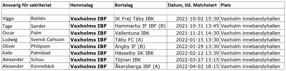 • Lista bemanning sekretariatet på hemmamatcher