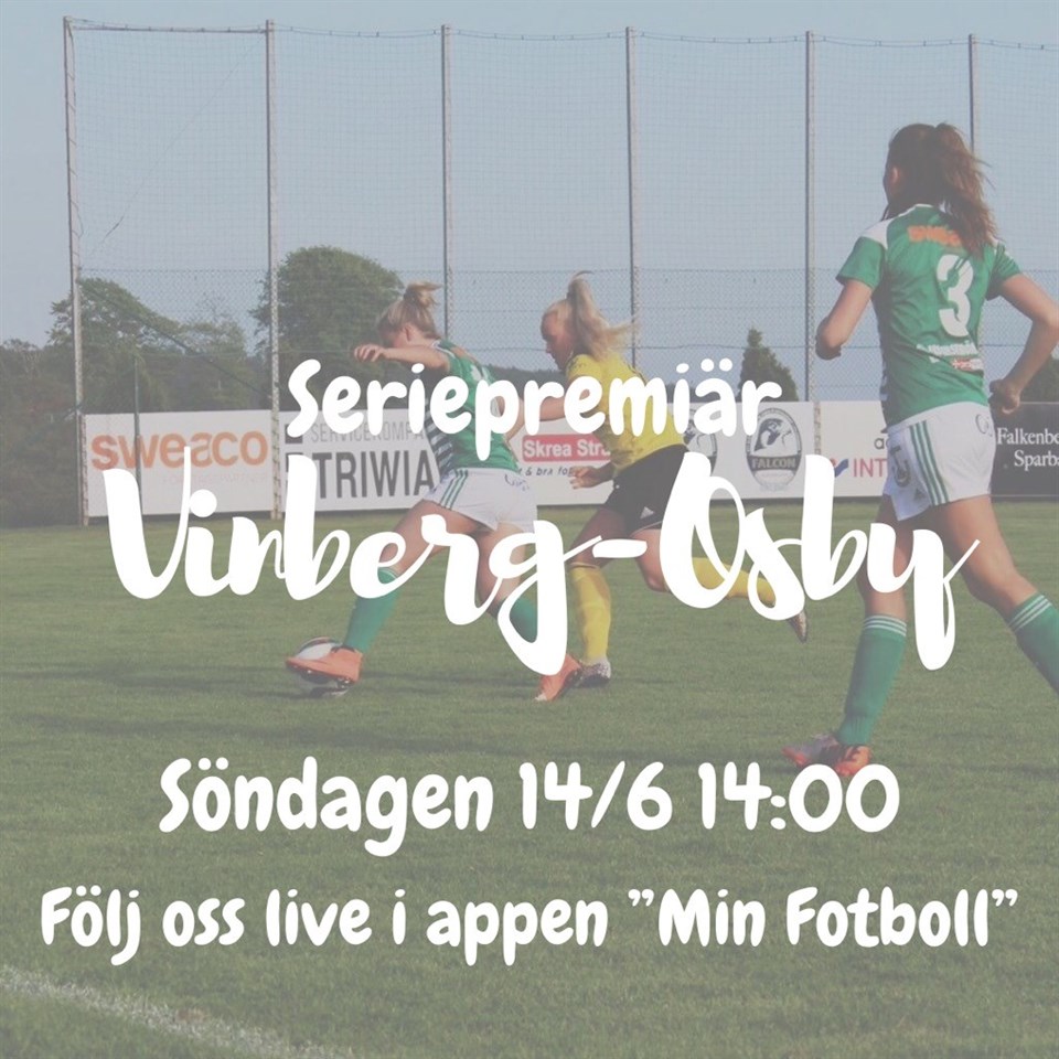 Fotbollsvärldens vädes upp och ner i samband med Coronas intåg. Försäsongen har varit den längsta i historien men nu får den sitt slut i och med att Folkhälsomyndigheten ändrat sina riktlinjer för tävlingsidrotten på seniornivå. Damlaget är först ut med att spela sin premiärmatch i div 2 hemma mot IFK Osby 14:00 på söndag 14 juni. Tyvärr säger rådande regelmente att mathcen skall spelas inför tomma läktare tillsvidare, däför kommer Vinbergs IF sända matchen live i appen "MIN FOTBOLL". Så vill Ni följa tjejerna, tanka ner appen och njut. Vårt damlag var väldigt tidigt inne på att träna vidare under Corona vilket har gjort att man står väl förberedda inför seriestarten. IFK Osby blir en bra värdemätare då de blev tvåa i serien förra säsongen. Tränarna är nöjda med bra fart på träningarna samtidigt som man fått möjligheten att slippa försvarsspel och speluppbyggnad i lugn och ro. Truppen ser stark ut och konkurrensen är stenhård, med ett snitt på 18 spelare per träning blir det ett startk lag som ställs på planen. Tjejerna själva känner naturligtvis av detta, vilket blivit en morot för tjejerna att alltid ge 110% på träningarna. Många tjejer har tagit stora kliv i sin utveckling sen man körde igång i Januari, säger tränarna. Detta kommer man visa prov på under Söndagens premiärmatch. Med tanke på att serien är en enkelserie är det extrem viktigt att vara med från början för att lyckas hålla sig kvar i serien, gör man detta ligger vägen öppen för många roliga fotbolls år för ett ungt Vinbergs IF. Samtliga i laget är taggade, är Ni???