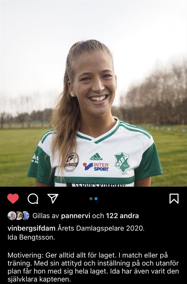 Årets Damspelare Vinbergs IF 2020