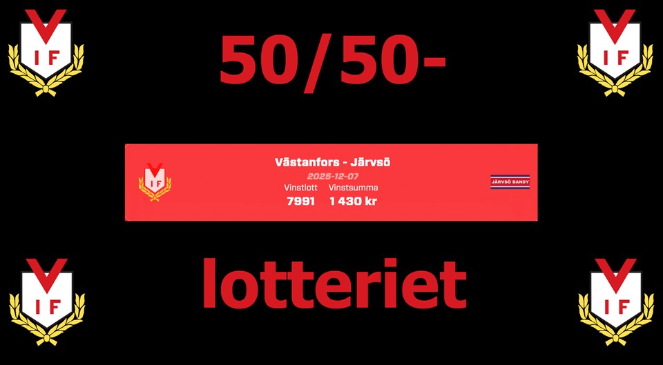 Nästa 50/50-lotteri arrangeras i samband med hemmamatchen mot Unik Bandy lördag den 20 december. Lottförsäljningen startar torsdag 18 december klockan 12:00 via den här länken.