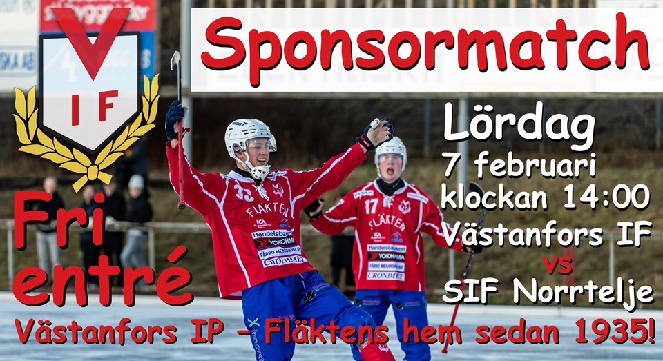 Självklart kommer Västanfors Bandys traditionella sponsormatch tillbaka i vinter. Matchdag är lördag 7 februari och gästar IP gör SIF Norrtelje. Avslag klockan 14:00.