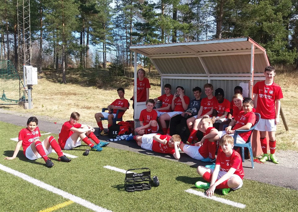 Så var den första och enda träningsmatchen för säsongen avklarad, och vi tycker att alla genomförde matchen helt okej. Detta var första gången vi spelade på fullstor plan, vi har ju inte ens tränat på mer än halvplan. Stundals fick vi till bra passningsspel och några bra avslut. Men vi har även en del saker som vi måste öva ner på. Matchen slutade 3-1 till grimslöv, vårt mål gjordes av Benjamin i andra halvek. Nu ska vi göra 2 bra träningar innan det är dags för seriepremiär borta mot Älmhult nästa helg! Ps. Är det någon som saknar ett par fotfollskor eller en strumpa så finns de hos Mattias