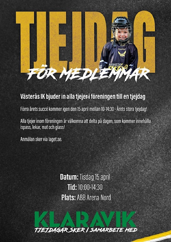 Klicka på bekräftelselänken i det mejl vi skickat dig för att börja ta emot uppdateringar från Västerås IK Ungdom Salboheds Flickhockeyskola.