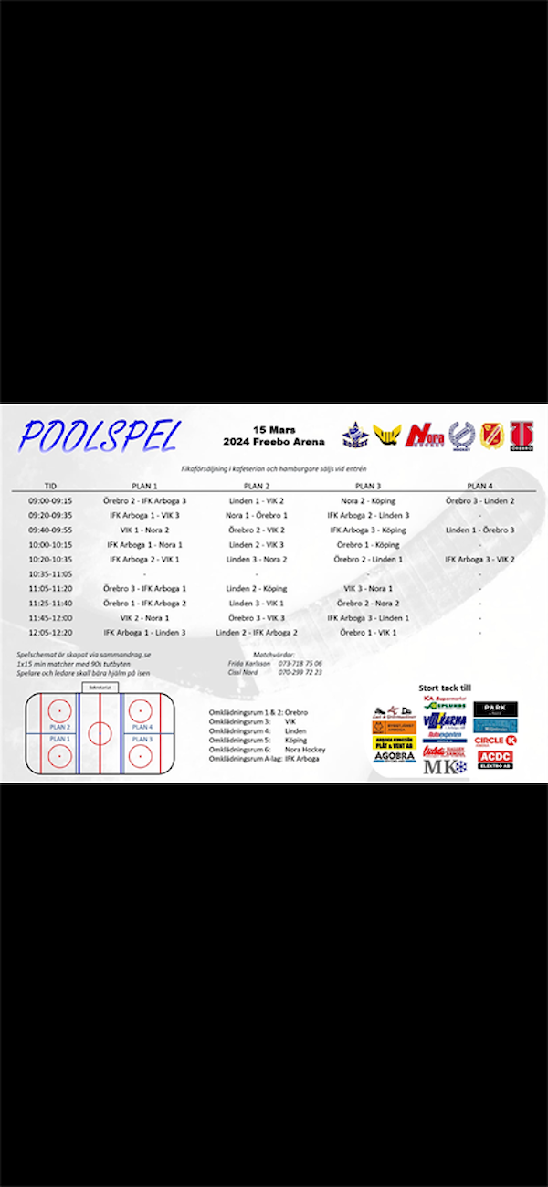 Spelschemat för Hallstahammar hittar ni under dokumentet, poolspel, Hallstahammar 15 mars.