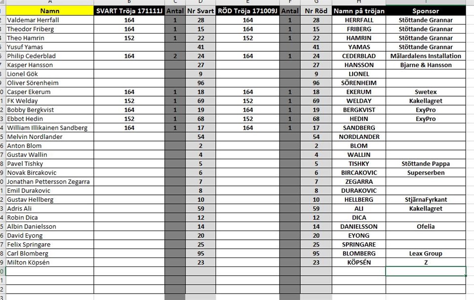 Sponsorer! Några av grabbarna saknar fortfarande en personlig sponsor. Ni som vill sponsra eller vet vilken sponsor som eventuellt saknas på era pojkar i denna lista får höra av er till Micke på 070-3667777.