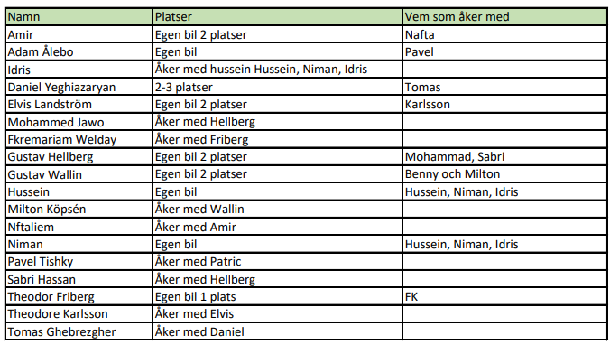 Jag har nu försökt sammanställa vilka som ska åka med vilka till cupen. Kolla och se om det stämmer. Speciellt ni som har erbjudit platser i era bilar. Pojkar 09:1 26 jun 2023 1kommentar