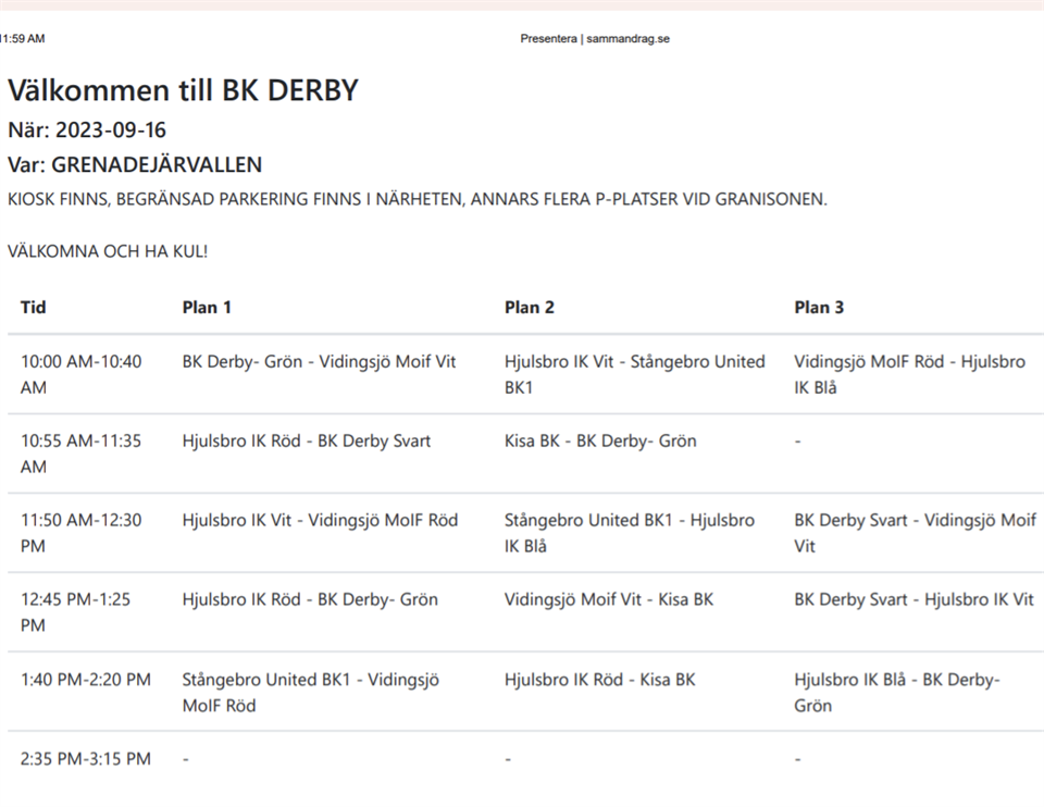 Hej, Här är spelschemat för sammandraget nästa lördag. Samling en halvtimme innan, lagindelningen kommer senare. Ha en fortsatt trevlig helg! Fotboll P-14 9 sep 2023 0kommentarer