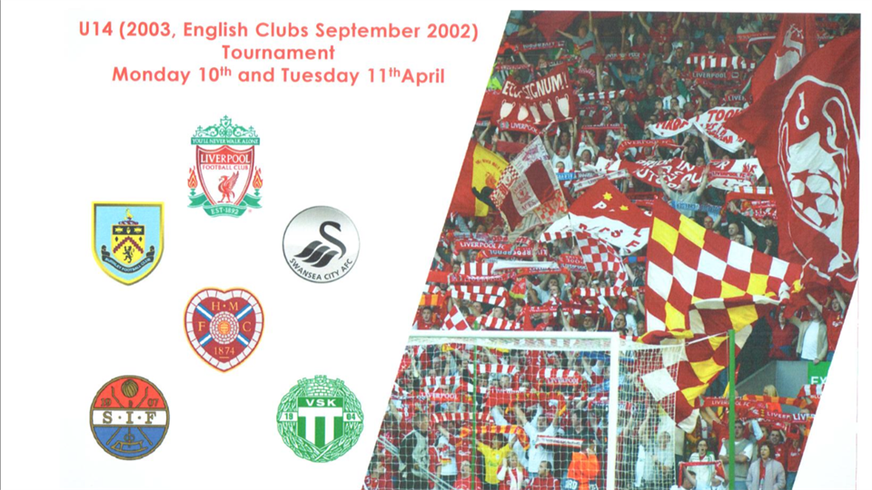 9 April ger vi oss av för att möta Liverpool FC, Swansea City AFC, Burnley FC, Strömsgodset IF (Norge) & Hearts FC (Skottland) i Liverpool Academy Cup. Vi spelar matcherna på Liverpools akademianläggning och kommer förutom matcherna göra andra aktiviteter väl på plats i England. Vi vet att det kommer bli riktigt tufft motstånd men det blir en upplevelse i en "once in a lifetime" klass för killarna och något de kommer bära med sig i resten av livet. Heja Sport!