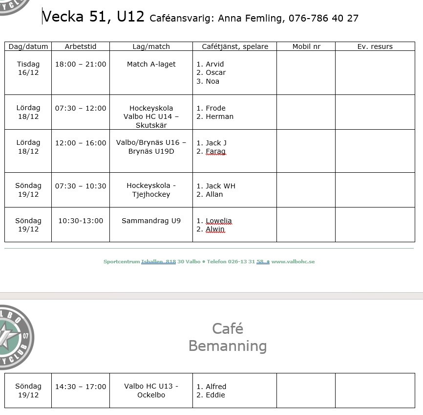 | 1 dec | Information till medlemmarna i Valbo HC |