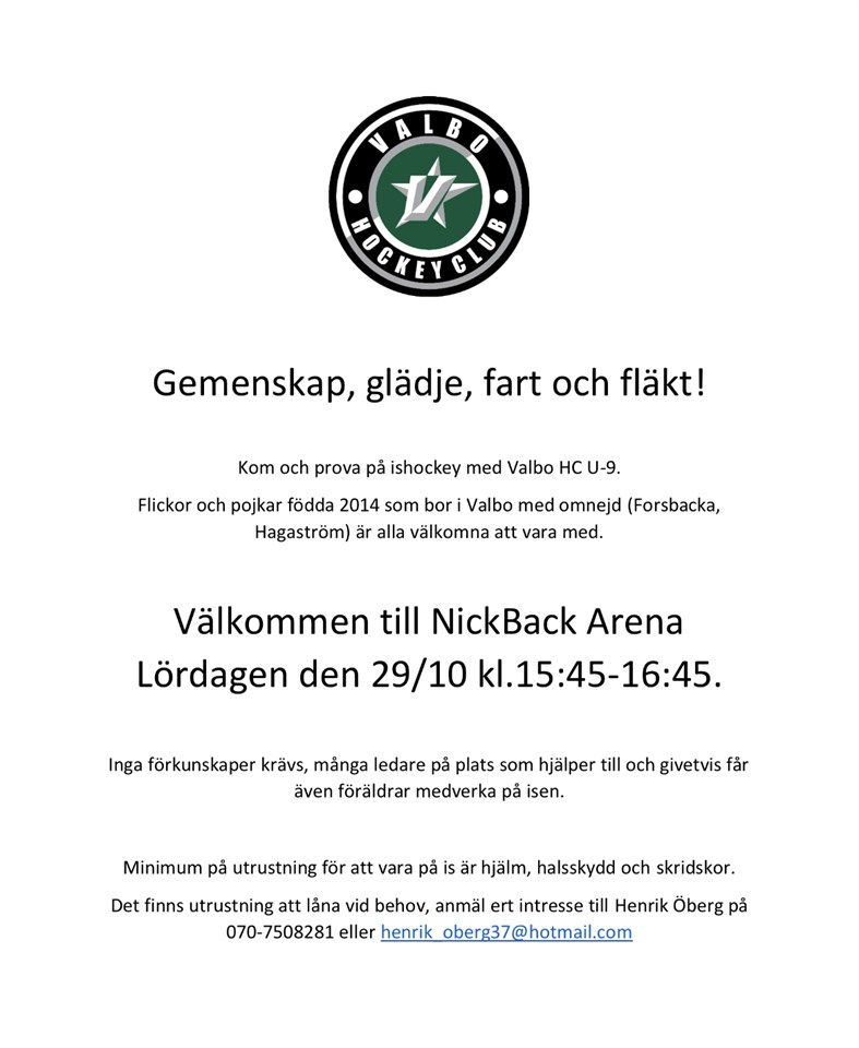 Hjälp oss sprida denna information bland era vänner, på sociala medier mm. Med vänlig hälsning, Ledarna Valbo HC U-9