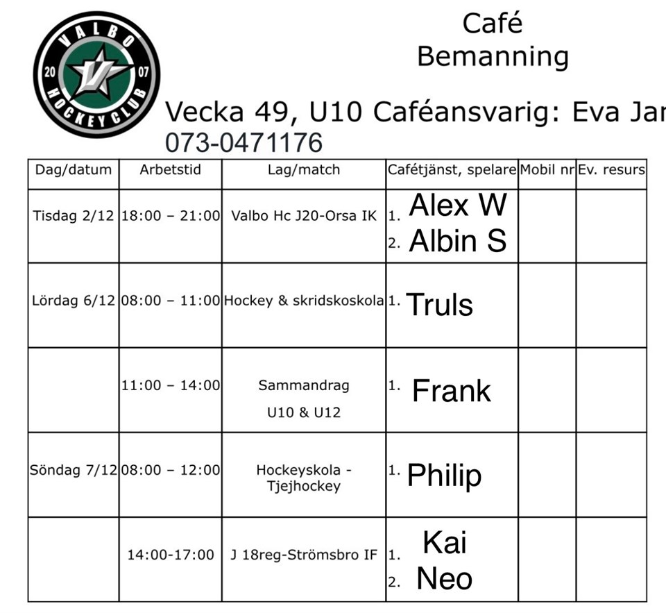 Klicka på bekräftelselänken i det mejl vi skickat dig för att börja ta emot uppdateringar från Valbo HC U-10 Team 16.