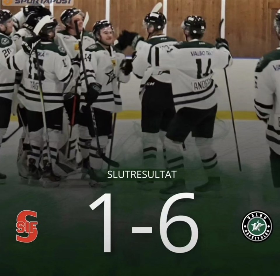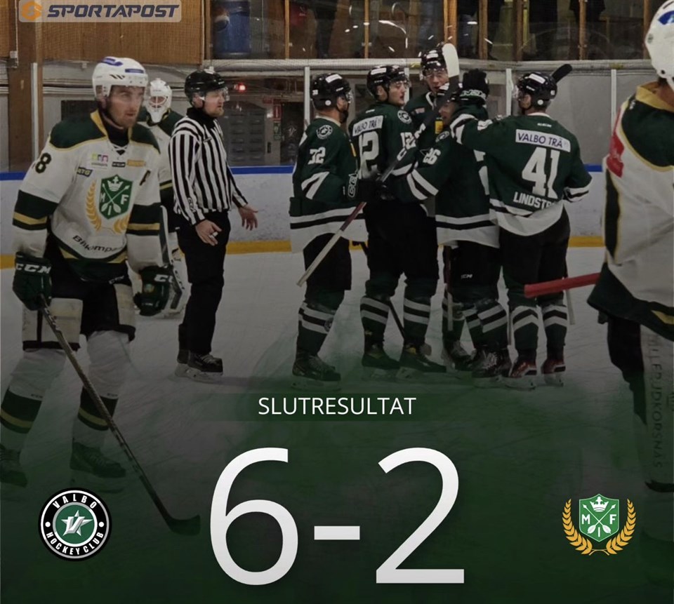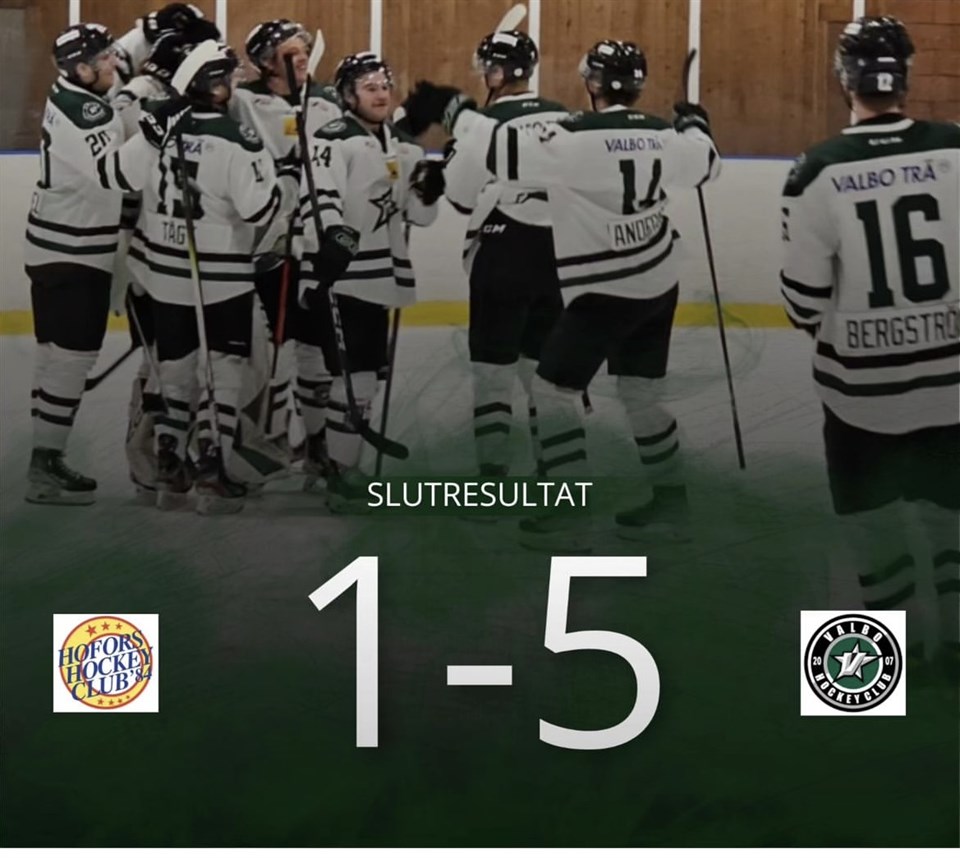 Det blev en femetta i Hofors för Valbo! - Vi gör en gedigen match i första och andra perioden, tredje blir mer avslagen. Nu laddar vi för seriefinal mot Malung på fredag. Säger tränare Anton Henriksson. Valbo tog greppet direkt i första perioden och gick upp till en 2-0 ledning efter två snabba mål av Marcus Hyttegård och Max Grundel. Hofors reducerade men Valbo utökade till 3-1 genom J20 spelaren Harry Svedlund som gjorde sitt första mål i A-laget. I andra perioden gjorde Valbo två mål genom Max Grundel som gjorde sitt andra för kvällen och Felix Söderblom. Tredje perioden blev en transportsträcka till slutsignalen och ganska händelselös. Valbo vann skotten med 27-17 och var genomgående det bättre laget. Nu väntar en träningsvecka där det blir lite högre intensitet för att vara på hugget inför matchen mot Malung nästa fredag. Notera att tisdagens match GGIK är flyttad till söndag den 29/10 kl 16.45. A-lag Herrar 13 okt 2023 1kommentar