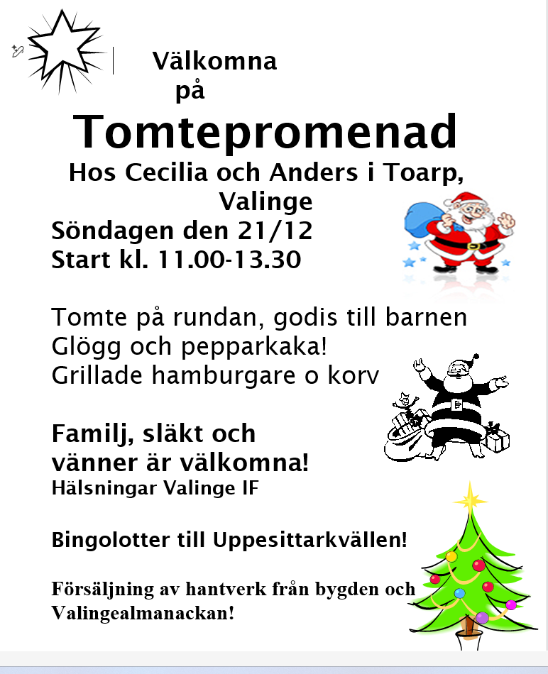 Vinsterna hämtas hos Elisabeth Otterdahl tel. 0707-128045 eller vid nästa promenad, söndag den 21 december med start hos Cecilia och Anders i Toarp, Valinge