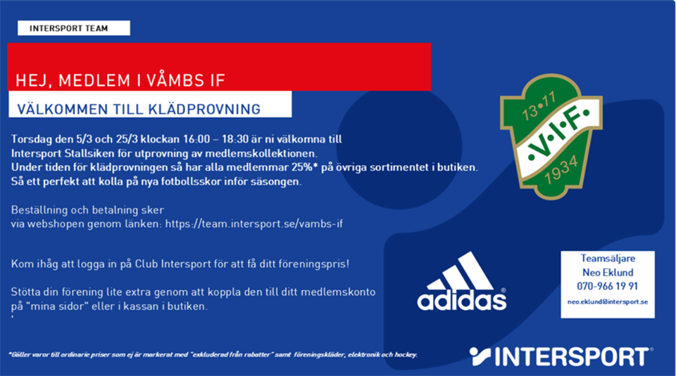 | Klädprovning Intersport | 5 mar, 16:00 |