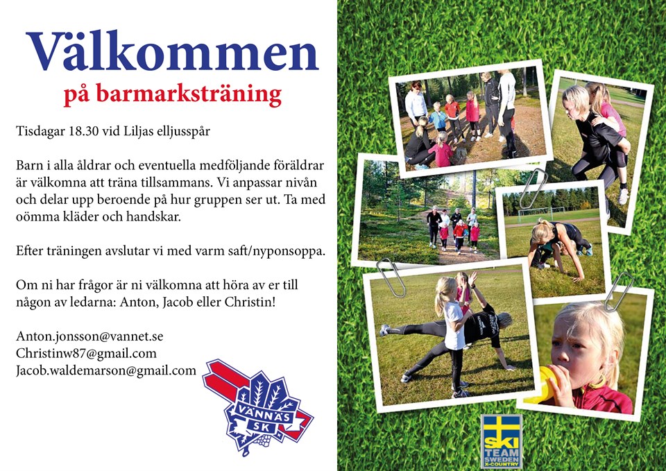 Äntligen kör vi igång skidlek för barn från 5år. Tisdagar kl.18.00-19.00 vid Liljaspåret. Det finns utrustning att låna gratis för de som behöver. Föräldrar på skidor är också välkomna att delta. Köldgräns -12gr. Om ni har frågor kan ni gärna kontakta någon av ledarna. Jacob, Sara, Anton eller Christin. jacob.waldemarson@gmail.com anton.jonsson@vannet.se christinw87@gmail.com Skidor/Löpning 27 nov 2023 0kommentarer