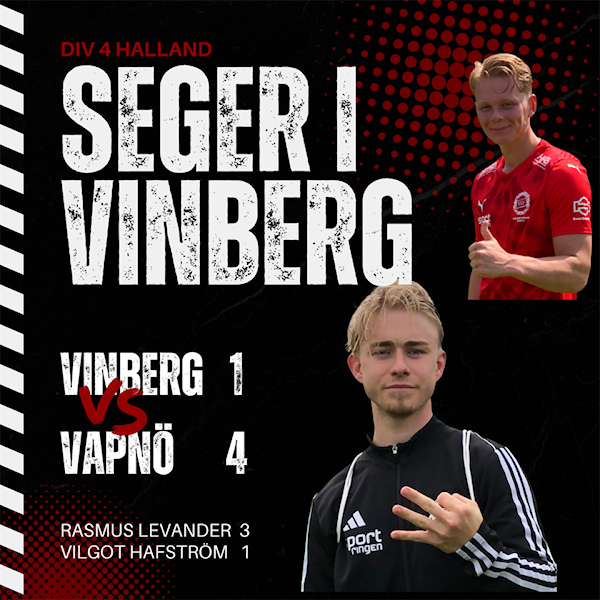 Vinberg reducerade visserligen till 1-2, men det blev aldrig riktigt spännande. Hemmalaget låg under press och hade svårt att svara när Vapnö väl satte fart. För Vapnö innebar segern den fjärde på de fem senaste matcherna – och ett kliv upp till tredje plats i tabellen.