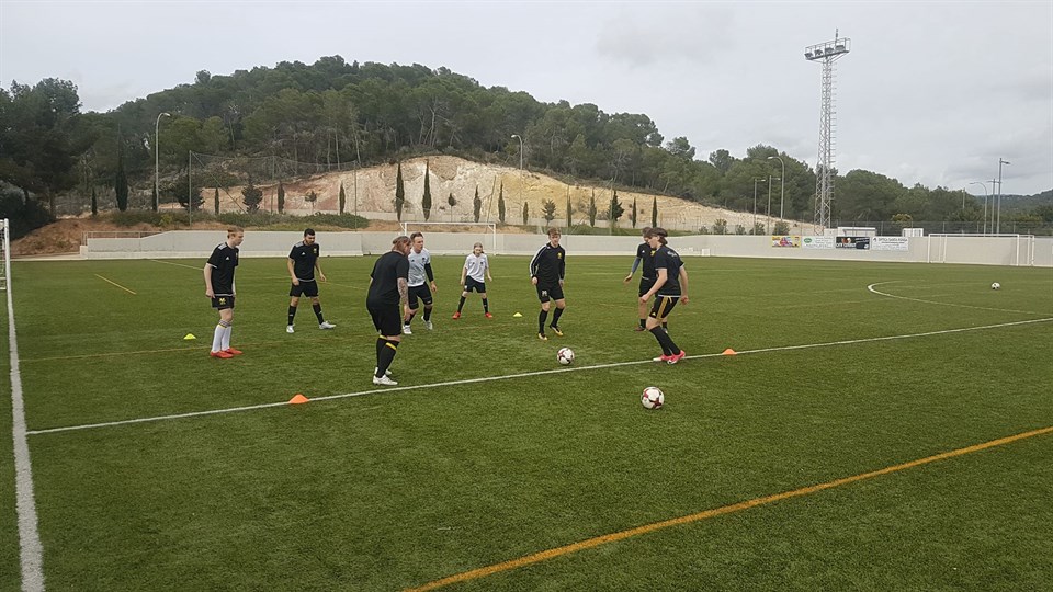 På fredagsmorgonen landade Vara SK på den klassiska charterön Mallorca för några dagar av finslipning och kommer varandra närmare som grupp. Efter att vi lämnat Vara runt 02:15 på natten till fredag var dom flesta ganska trötta när vi väl når vårat slutmål runt 11-tiden nere på ett halvklart Palma. Tyvärr får vi motgång i form av att Sebastian "Snubben" Nilsson väska inte kommer med och det blir genast några liknelser med "Hammarby" och Sällskapsresan. Detta fördröjer oss lite men så slutligen hamnar vi på vårat boende för en omedelbar lunch. Portionerna var massiva och uttrycket -Låt maten tysta mun passade som handen i handsken. Senare på eftermiddagen var det dags för träningspass och ett lättare sådan. Målet med denna var att få igång kroppen och det handlade mest om rörelse och lite lek. Även veckans första tävlingsmoment satte igång här och lagen var uppdelade efter rumsindelningen. Detta var något som skulle pågå hela lägret och ett vinnande lag skulle koras vid hemfärd. Nu var det återigen dags för middag i form av trerätters. Redan här förstod jag att "pôjka" skulle bli bortskämda. Kvällen gick åt till att lära känna området och faciliteterna, dom flesta var nog ganska trötta och det blev inga större aktiviteter. Lördagen bestod av 2 träningspass och mat i stora lass återigen. Skönt att kunna gå ut på en fin konstrgräsplan men solen skinande i ansiktet och shortsen var på. Söndagsaktiviteten bestod av först ett träningspass och sedan ett teoripass i form av att bege oss till Iberostar Stadium och se Real Club Mallorca spela hemma mot Formentera. Mallorca leder serien med 8 poäng och Formentera ligger på en nedflyttningsplats i behov av poäng. Alla var nog slående överrens om att detta skulle bli en enkel nöt att knäcka för favorittippade Mallorca i Secunda B. Men det var snarare tvärtom och matchen slutar 1-1 efter ett sent kvitteringsmål från Mallorca. Det blev ett lättare löppass på kvällen med avslutande fotbollstennis. En underbar dag var till ändå! Måndagen bestod av 1 träningspass för senare en frikväll med gemensam middag ute på stan. Här blev det även redovisning och lägrets vinnare i form av: Robin Lundgren Oliver Strömfeldt Alexander Larsson Jonathan Bahnemann Måndagen bestod även av en avslutande tävling för dom "invigda" som hade gjort en hel del uppdrag under veckan och nu väntade det slutgiltiga testet. I ren Robinsonanda så skulle dom ta sig från punkt A till B med en luftmadrass i en inte allt för varmt pool. Detta var en kul upplevelse för oss andra :) Summa summarum har detta läger varit riktigt lyckat och vi halla har haft otaliga skratt som resulterar i mer kramper än en förlängning på en blöt gräsplan. Paketet var av toppklass och vi hade inte kunnat önska mer och men vill genast åka tillbaka än att ta sig till jobbet varje dag. Bifogar en länk till några bilder för er att beskåda Bilder Nu är det dags att ladda för träningsmatch mot Falköping i helgen för att på onsdagen nästa vecka ta oss an Tidaholm i DM som vi blev lottade mot. Ska bli intressant att spela match igen men lite slipade detaljer och vad våran träning kommer att resultera i. Hoppas vi ses på Bendersvallen på Lördag! //Rasmus