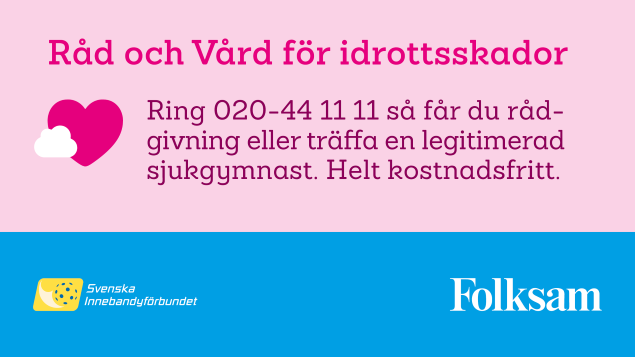 Nedan följer viktig information från innebandyförbundet om möjligheten till råd och numera även vård av idrottsskador. Observera att rådgivningen kan vara både vid besvär eller som förebyggande! Läs på förbundets webbsida här Folksam är Svenska Innebandyförbundets samarbetspartner kring spelar-/ledarförsäkringar och har i samarbete med SIBF förändrat försäkringen till det bättre genom en ny tjänst som heter Råd och Vård för idrottsskador. Detta gäller från och med 1 oktober 2017. Innebandy.se har pratat med Lena Lindqvist, Kundansvarig Idrott Folksam. Varför gör ni den här förändringen i olycksfallsförsäkringen? - Folksam är idrottens försäkringsbolag och därför är det viktigt för oss att erbjuda tjänster som hjälper idrottare på rätt sätt. Tillsammans med Svenska Innebandyförbundet vill vi erbjuda mer. Nu när Råd och Vård för idrottsskador finns kan du som spelare få rätt råd och vård när skadan inträffat. Du behöver inte ha en skada för att ringa till Råd och Vård för idrottsskador – du kan ringa och få skadeförebyggande råd. Vilka är de stora skillnaderna? - Sedan 2015 har du som innebandyspelare, tränare eller förälder haft tillgång till rådgivning av legitimerade sjukgymnaster. 1 oktober inför vi även vård. Det betyder att du kan få träffa en idrottsspecialiserad sjukgymnast eller läkare för att få hjälp. En förbättring som genomförts är att försäkringen nu omfattar överbelastningsskador och inte bara olycksfall. Vad innebär det? - Det innebär att försäkringen blir ännu mer idrottsinriktad och det går att få råd tidigt när man börjar känna av en skada. Du som idrottare får bättre hjälp av försäkringen. Påverkas priset för försäkringen för mig som spelare/ledare? - Nej, priset påverkas inte. Förutom innebandy, vilka andra idrotter har tjänsten Råd och Vård för idrottsskador? - Fotboll och basket – fler förbund kommer erbjudas att vara med under 2018 och 2019. Hur funkar Råd och Vård för idrottsskador? - Råd och Vård för idrottsskador är en kostnadsfri rådgivningstjänst och din medlemsförmån. Ett nätverk av erfarna idrotts-sjukgymnaster och läkare runt om i landet står beredda att hjälpa våra spelare. Och det är helt kostnadsfritt. Så här går man till väga: Spelare/ledare/förälder ringer "Råd och vård för idrottsskador" - 020 44 11 11 En sjukgymnast svarar i telefonen och ger råd för den aktuella situationen. Om sjukgymnasten bedömer att spelaren behöver få träffa en vårdgivare kan denne boka en tid till spelaren direkt i telefonen. Spelaren besöker sjukgymnast eller läkare. Det är också möjligt att få ett återbesök hos sin sjukgymnast eller en röntgen hos sin läkare. (Det finns dock en begränsning på max två sjukgymnastbesök, ett läkarbesök, en röntgen.) B-lag Herrar 4 okt 2017 0kommentarer