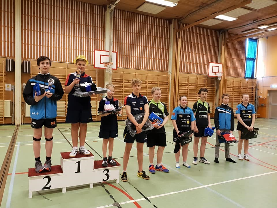 Det blev succé för VBTK i TTEX Top 9 Norra Kalmar Län. Det var många jämna och hårda matcher under dagen, men till slut fick vi ändå se Felix som 1a, Elis 3a och Albert 4a! Grabbarna spelade på jättebra. Felix var lite av en slow-starter och hade problem att få till sitt fulla spel under förmiddagen. Han spelade dock stabilt och kunde sedan gasa på och spela topp-pingis under resterande del av dagen. Han förlorade endast mot Albert med 12-10 i skilje. I två av övriga matcherna var han illa ute, men lyckades vinna 11-8 i skilje mot Emil och Elis. Elis började på topp och spelade på toppen under dagen. Han hade en lite dipp efter lunch men kunde sedan höja sig igen de avslutande matcherna. Lite snopet var det i matchen mot Alex från Oskarshamn där han hade matchboll, vilket skulle gett han andraplatsen. En kanonturnering trots allt med jättefint spel och bra attityd! Albert spelade även han kanonpingis. Han var som sagt den enda som lyckades vinna mot slutsegraren Felix, och i andra matcherna visade han prov på både fint attack- och defensiv-spel. Alla spelare kan se sina resultat under Dokument, i mappen som heter TTEX Top 9, klicka vidare länken: https://www.laget.se/vasterviksbtk/Document Alla deltagaren hade gott uppförande och det var många bra matcher för publiken! Vi från VBTK vill tacka alla deltagare som gjorde dagen till en kanonupplevelse! Vi hoppas alla är nöjda och vill komma tillbaka nästa år! Vi vill avsluta med att tacka sponsorerna TTEX och Intersport som gav jättefina priser till ungdomarna!
