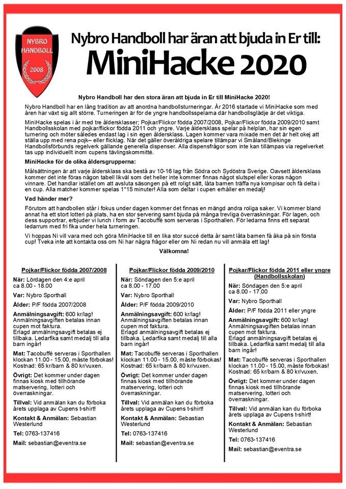 Hej på er! Hoppas ni haft och har en riktigt härlig sommar. En ny handbollssäsong väntar runt hörnet. En handbollssäsong som vi hittills inte vet så mycket om, men tänkte ändå ge er lite kort information och stämma av läget gällande peppen hos er pojkar. Den 23/8 har vi ett ledarmöte och då får vi mer skarp information om träningstider, matcher och serier och så vidare. Det verkar som att den nya hallen ute på Welux blir verklighet, men att träningsstart därute lär vänta på sig, så vi kör i andra hallar så länge. Efter det ledarmötet nästa vecka tänkte vi smygstarta med en beachhandbollsträning ute vid Skogshaga. Då har vi lite mer information att också ge killarna. Den träningen tänker vi onsdag den 24/8 klockan 17.30. Nu får vi ju som sagt lite träningsinformation på mötet nästa vecka , men vi tänker att vi drar igång ordinarie träning med åtminstone en gång i veckan från v.35. Också ett föräldramöte är ju nödvändigt och vi bjuder in så fort vi har lite mer på fötterna. Mvh Niklas och Malin Så till sist, är era boys taggade för ny säsong? Tumme upp i så fall. P16 (Födda 2008-2011) 21 aug 2022 0kommentarer