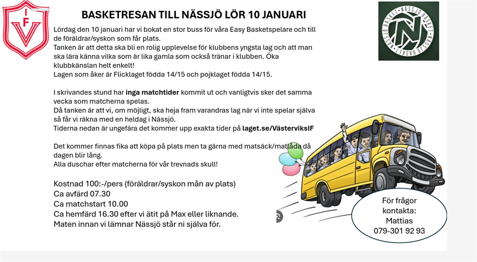 | Västervik F13 Nässjö Basket (hemma) | 17 jan, 13:00 |