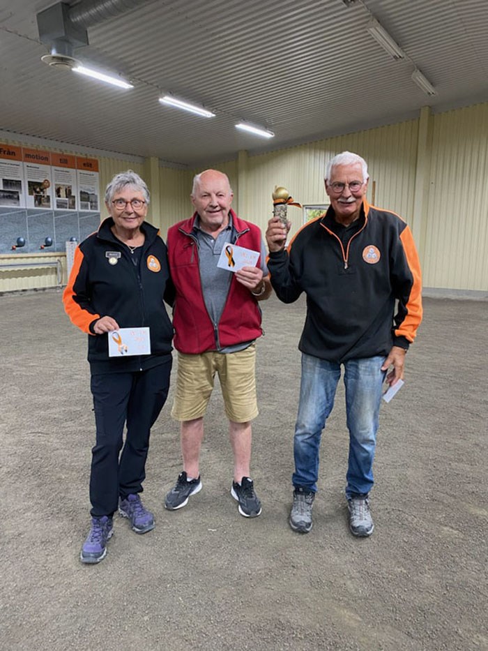 I strålande sensommarväder spelades bouletävlingen på Växjö Boule Arena till förmån för Cancerstiftelsen. Inbjudan till tävlingen hade lockat spelare från ett tiotal olika klubbar som tillsammans utgjorde 26 dubbel-lag. Efter 5 matcher Monrad på eftermiddagen stod Stefan Lindstig och Hasso Hansson VBS som segrare. På andra plats kom Rudolf Jarz och Pam Jarz VBS. Trea blev Göran Gustafsson och Bosse Blomgren VBS. På fjärde plats kom Lennart Börjesson VBS och Eva-Britt Svensson PRO. Dessutom delades det ut ytterligare ett antal priser till deltagande lag. Ordförande Bernt-Åke Solverius tackade spelare och övriga som bidragit på olika sätt med gåvor till Cancrstiftelsen. Växjö Boulesällskap 11 sep 2023