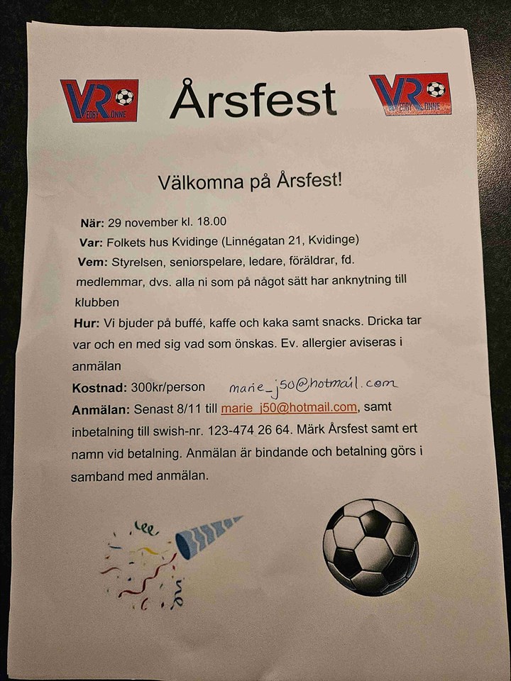 Klicka på bekräftelselänken i det mejl vi skickat dig för att börja ta emot uppdateringar från Vedby-Rönne IF PF-19/20.