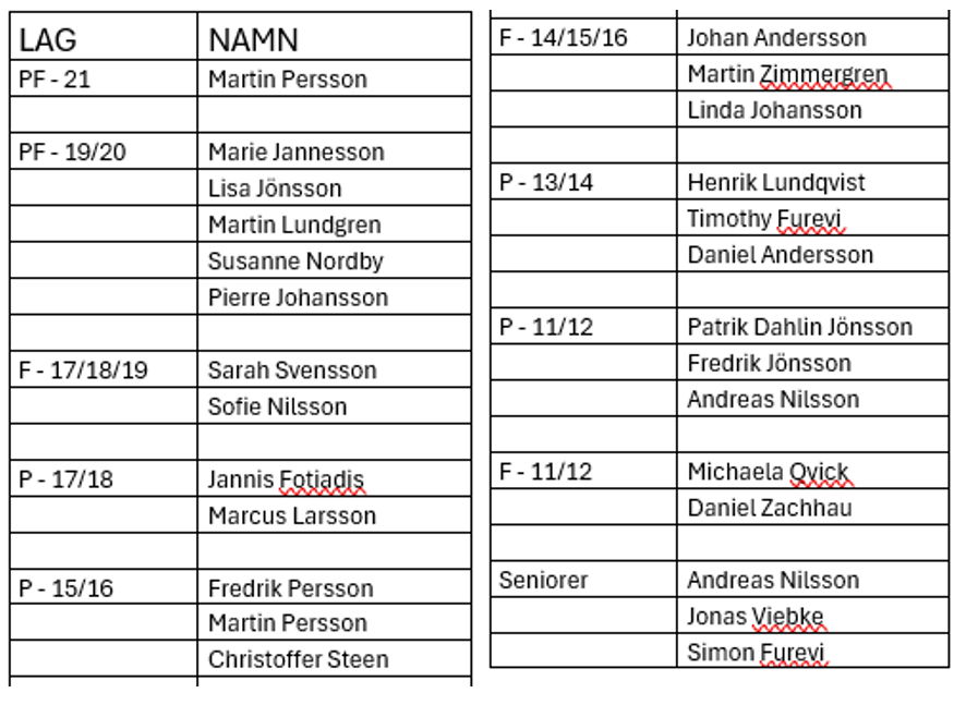 Uppdaterad tränarlista och tränarsida inför 2026