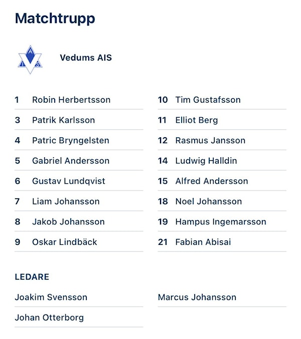 Fyll i din e-postadress för gratis uppdateringar om Vedums AIS Herr