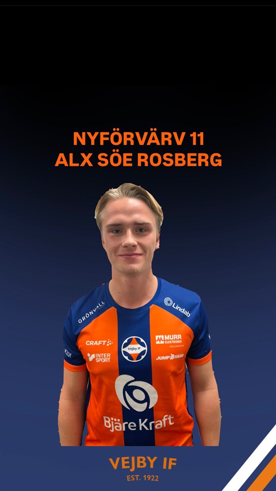 Vi hälsar Alx Söe Rosberg välkommen till Vejby IF. En stark och lovande mittback som kommer från ÄFF U19. Välkommen till oss Alx!