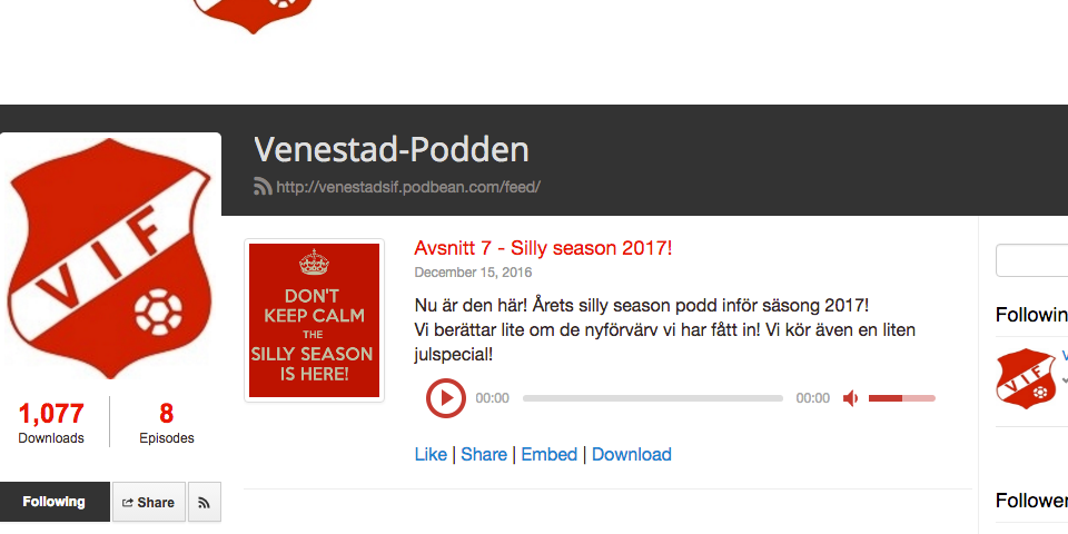 Avsnitt 6 - Seger! Vi är tillbaka igen! Efter en magsik säsong så döper vi detta avsnitt till SEGER! Ett lite längre avsnitt då det var ett tag sedan vi var i studion (tyvärr.. ;) Klicka på länken nedan och In o lyssna! Venestad-podden! Avnsitt 6 - Seger! Mycket nöje!