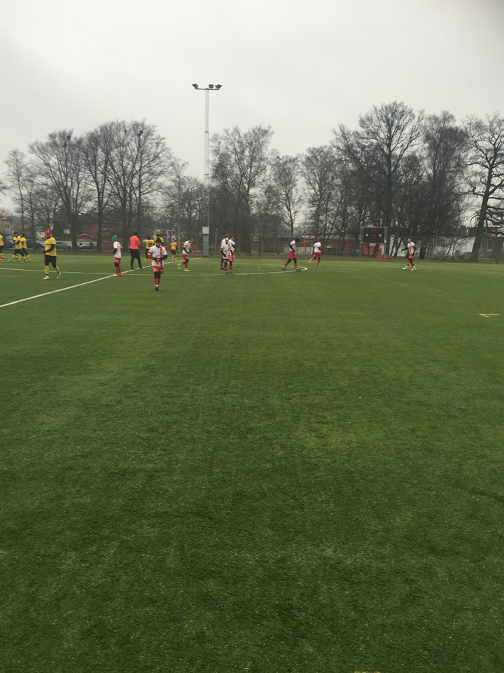 Vi ställde upp enligt följande mot Österslöv. Martin i mål ( ny ) Macke HB Björn o fd målisen Emil MB Danne VB Simon YMF ( ny ) Martin p IMF ( ny ) Tefic IMF Shapur YMF ( ny ) Anfallare Sacke & Anton. Bänk: Frank, Eddie, Jeppe, Malte. Så idag körde vi utan rutinerade herrar som Rasmus, Andre, Sander, Tim, Linus osv. Vi gör det förbannat bra & vi ska komma ihåg att vi endast gjort två träningspass med boll. Mycket nytt & ovant, men det syntes inte. Mycket som redan ser bra ut. Tror Martin i målet fick en smärre chock av att det kan vara så lugnt att stå i mål, det är han inte van vid skulle jag tro. Matchen slutade 1-1 då vi ganska onödigt släppte in ett mål i sista minuten. Vårt mål gjordes av Jeppe efter lite flipperspel i deras straffområde. Nästa match är mot Degeberga 19/3, men innan dess ska vi hinna träna ett par ggr till & förhoppningsvis ta ytterligare ett steg i rätt riktning. Bra så! // Pära
