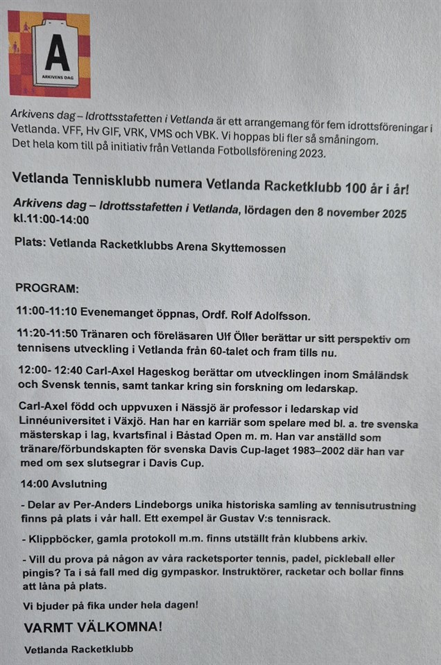 Stafetten går vidare från Vetlanda FF och Hvetlanda GIF till Vetlanda Racketklubb den 8 nov. 2025