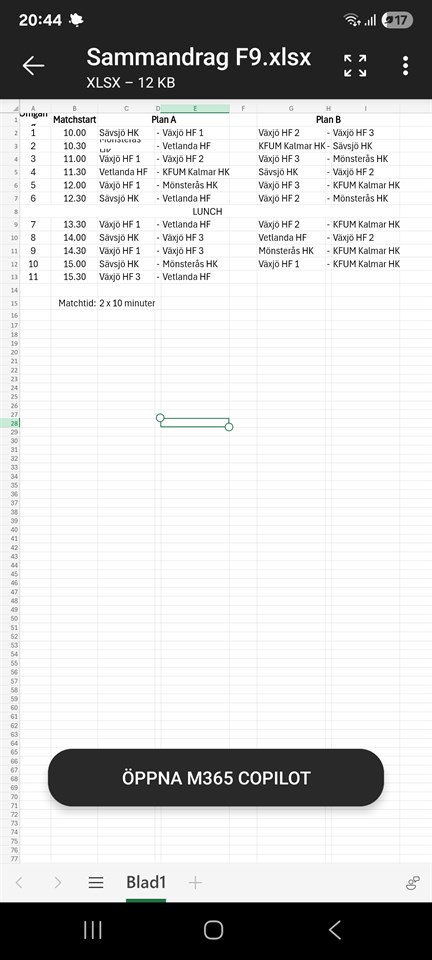 Hej alla, På lördag är vårt första poolspel för säsongen, det ska bli så roligt! Vi samlas på parkeringen vid EM möbler kl 08:45 för att räkna in alla har man plats i bilen och kan ta med en extra tjej vore jag tacksam om ni anmäler detta så jag vet att alla kommer med. Bifogar spelschema så ni ser hur vi kommer att spela. Det ser ut som att vi kommer spela 6 matcher under dagen med paus för lunch. Lunch tar var och en med sig själva. Packa gärna med mellanmål som de kan ta mellan matcherna ifall de behöver! Kiosk kommer att finnas, men jag vet ej vad som serveras. Jag har med matchställ men av tidigare erfarenhet är det väldigt varierade storlekar, packa gärna med ett par extra shorts om ni har möjlighet, samt strumpor, skor, vattenflaska och kanske en träningsoverall att ha mellan matcher och vid lunch. Hör gärna av er till mig på sms 0730440904 om ni har några frågor, annars hoppas jag att vi ses på lördag! / Lina