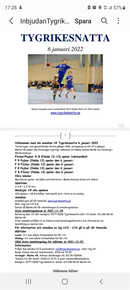 Flera ungdomslag i Vetlanda HF har anmält sig till Tygrikesnatta som går av stapeln 6/1 -22. Vi är ju inte så stort lag men om det finns intresse av att vara med så kan vi säkert fylla på vårt lag på plats. Sista anmälningsdag är som nu ser redan 24/11. Kommentera gärna nedan om det finns intresse av att åka för då anmäler vi oss! P10/11 21 nov 2021 3kommentarer