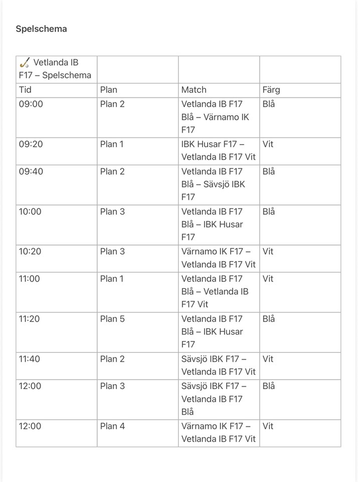 | Jönköpings IK F16 (borta) | 21 dec, 10:00 |