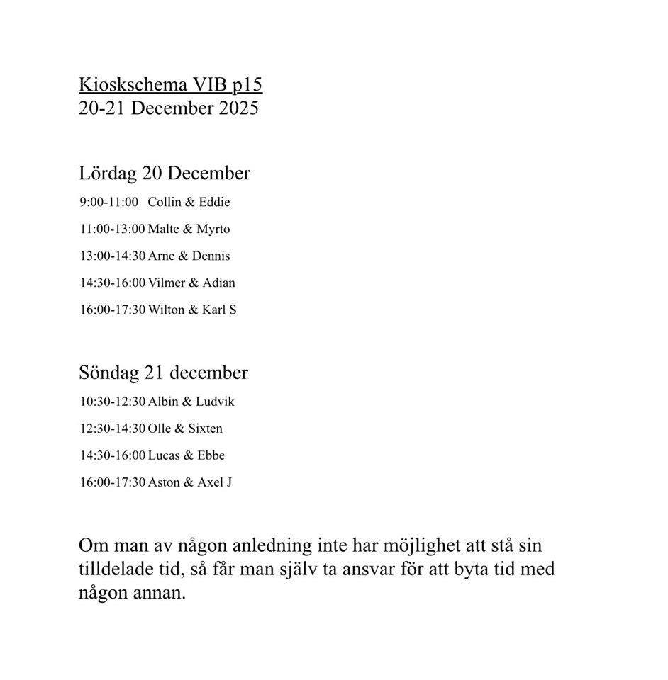 | Nässjö IBF P15 (borta) | 23 nov, 10:00 |