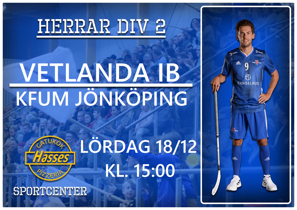 På lördag 18/12 klockan 15:00 är det dags för herrlaget att spela årets sista match då KFUM Jönköping kommer på besök. KFUM parkerar på en femteplats i tabellen med 18 inspelade poäng. Efter förra veckans seger drygade VIB ut serieledningen och är nu 7 poäng före tvåan Gränna och hela 13 poäng före trean. Ettan och tvåan i serien avancerar till division 1.