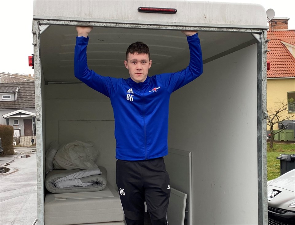 Inför säsongen anslöt Boxholmsbon, Edwin Gustavsson, till Vetlanda IB och framgångarna har inte låtit vänta på sig. ”G:son”, som han kallas, har under den pågående säsongen spelat till sig en backplats i förstafemman där han har gjort det fantastiskt bra och verkligen utvecklats som innebandyspelare. För en tid sedan påbörjade Edwin en anställning på Inwido Produktion AB (Elitfönster) i Vetlanda där han jobbar dagtid som truckförare och planerare. I dag på förmiddagen anlände även ”flyttbilen” med möblerna vilka bars in i den nybyggda lägenheten i Pukaregården. Vetlanda Innebandy hälsar ”G:son” välkommen som nybliven Vetlandabo! - Det här känns jättebra, jag trivs otroligt bra i föreningen, med laget och på jobbet så jag ser verkligen fram emot att även bo på orten då jag får mer tid över till att fokusera ännu hårdare på innebandyn. - Jag är väldigt glad och tacksam att föreningens sportchef har varit behjälplig med såväl jobb som bostad, säger Vetlandas senaste invånare Edwin Gustavsson. FAKTA EDWIN GUSTAVSSON: Född: 2000 Position: Back Skjuter: Vänster Tröjnummer: 86 Tidigare klubbar: Boxholms IBK och IBF Tranås