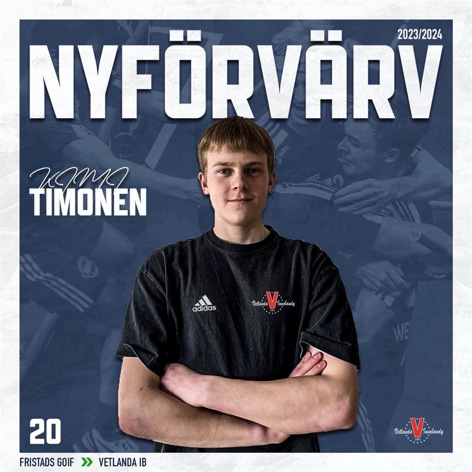 Vetlanda Innebandy har i dag äran att få hälsa centern, Kimi Timonen född 2004, välkommen till VIB. Kimi som för närvarande bor i Borås har Borås IBF som moderklubb. I början av augusti lämnar flyttbilen ”tygriket” med destination Småland. Kimi har under de senaste säsongerna lirat som ordinarie center i division 2-laget Rydboholms SK samt i Juniorallsvenskan med Fristads GoIF. Under säsongen 2022/23 har Timonen även varit delaktig i Fristads GoIF:s herrlag som tog steget upp till allsvenskan. - Kimi Timonen är en spelare som verkligen ”andas innebandy” dygnets alla timmar och som är beredd att lägga ner allt som krävs för att lyckas i sin innebandysatsning så det ska bli oerhört intressant att få följa honom i Hasses Sportcenter kommande säsong, säger VIB:s sportchef Henrik Åhlund. Referenserna i ”tygriket” beskriver VIB:s senaste nyförvärv på följande sätt; ”Den lille spelaren, med det stora spelet i sig, är en kvick spelare med härlig accelerationsförmåga och svårlästa tempoväxlar. Besitter också en fin klubbteknik och en mycket god spelförståelse. Svårstoppad i spelvändningarna och stark i att sätta press på motståndarnas bollförande spelare. Han ger aldrig upp och tar alltid backcheckingen till 100 procent”. - Det ska bli grymt roligt att få spela innebandy i VIB, det jag har hört och läst om föreningen och allt runtomkring gjorde beslutet så mycket enklare när Åhlund kontaktade mig, säger Kimi Timonen. FAKTA KIMI TIMONEN: Född: 2004 Position: Center Skjuter: Vänster Tröjnummer: 20 Tidigare klubbar: Borås IBF, Fristads GoIF och Rydboholms SK